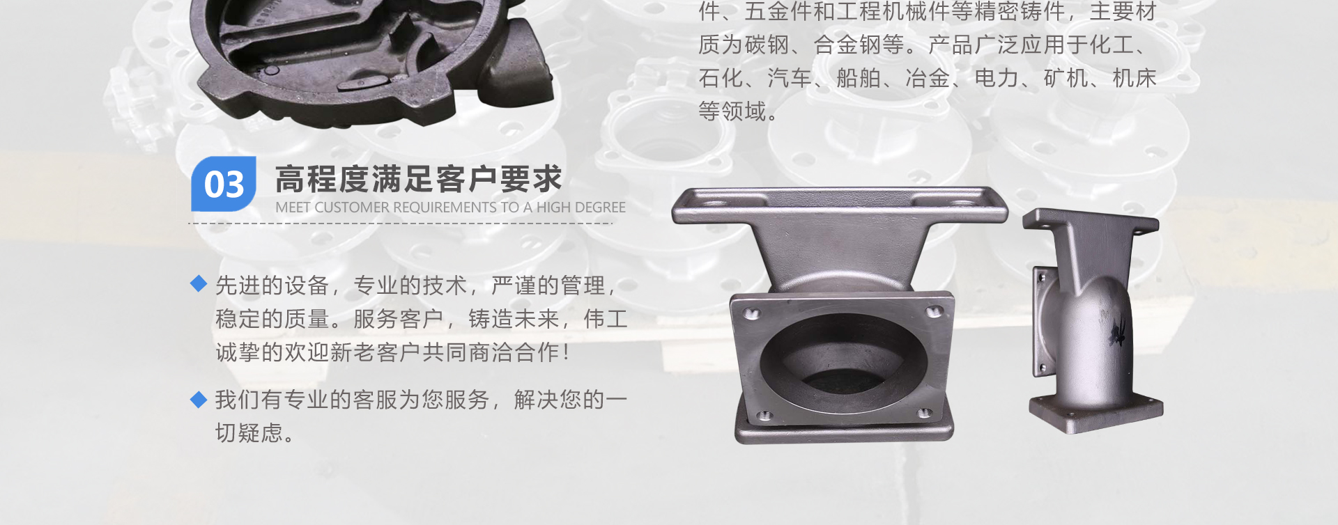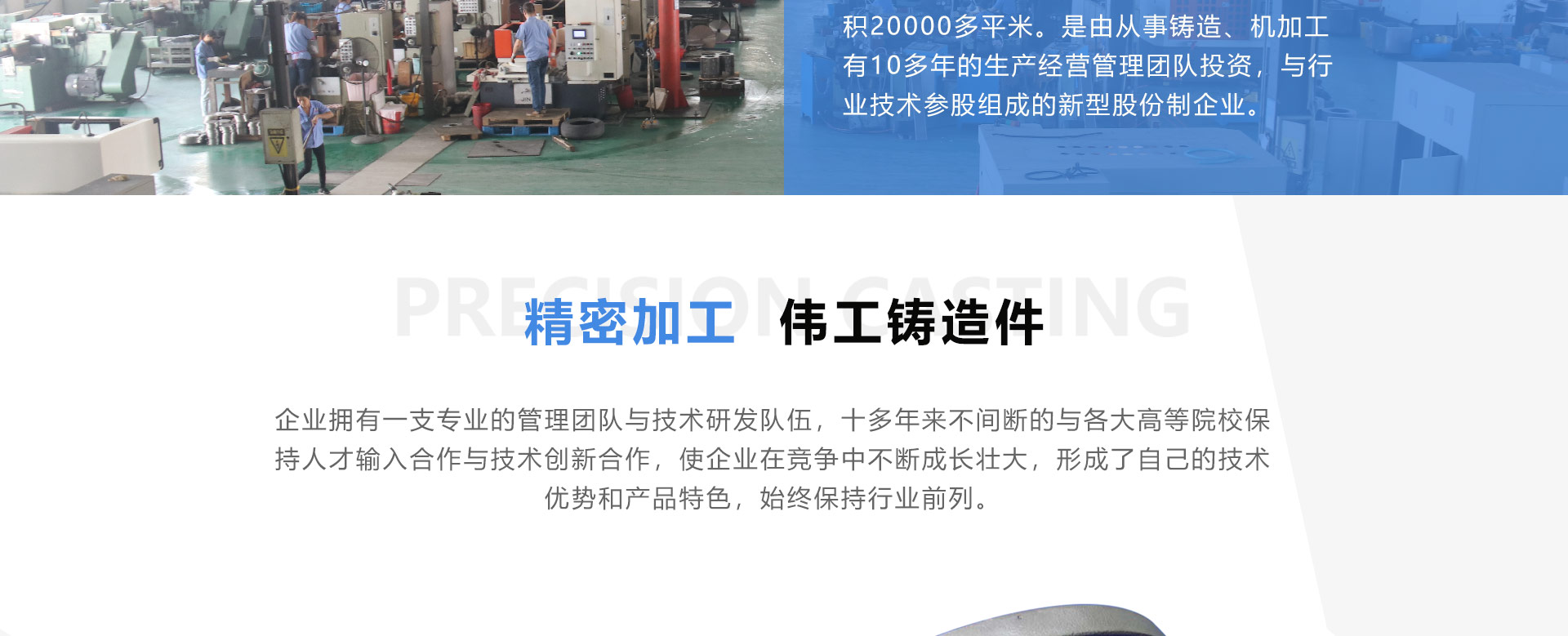 安徽偉工機(jī)械科技有限公司,坐落于安徽蕪湖新蕪經(jīng)濟(jì)開發(fā)區(qū),是一家専業(yè)從事鑄造產(chǎn)品設(shè)計、研發(fā)、生產(chǎn)、銷售于一體的企業(yè),公司為客戶的產(chǎn)品提供多樣的技術(shù)支持與設(shè)計,公司主要鑄造技術(shù)有潮模砂鑄造、硅溶膠精鑄工藝。主要產(chǎn)品有:不銹鋼閥門配件、泵閥配件、汽車配件、工業(yè)管道配件、工程機(jī)械配件、汽車配件等。材質(zhì)為:低合金鋼、304、316、316L、鉻鉬鋼、哈氏合金、碳鋼、雙相鋼等。公司已先后通過ISO9001和TS16949等多種體系審核,以完備的管理手段和齊全的檢測設(shè)備滿足客戶需求,進(jìn)的設(shè)備,専業(yè)的技術(shù),嚴(yán)謹(jǐn)?shù)墓芾?,穩(wěn)定的質(zhì)量。服務(wù)客戶,鑄造未來,偉工誠摯的歡迎新老客戶共同商洽合作